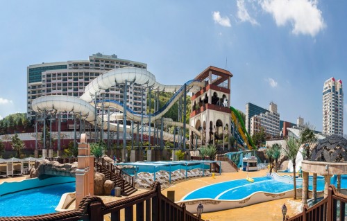 강원도의 맑은 공기와 깊은 계곡 청정수가 빚어낸 레저풀형 테마워터파크 블루캐니언은 깊고 푸른 지중해풍의 고품격 물놀이 공간을 테마로 다양한 휴게실과 놀이시설을 배치하였으며, 국내최초의 업힐형 슬라이드와 국내 최장.최대폭의 훼미리 슬라이드를 도입하였다.